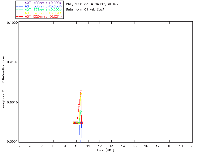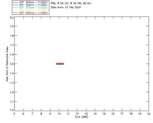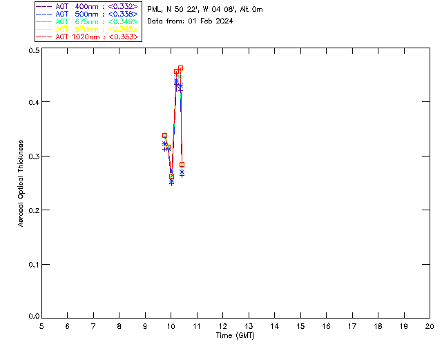 In May 2001 a PREDE POM01-L was installed on the roof of the Plymouth Marine Laboratory to continue the atmospheric correction research of the PML Remote Sensing Group. This was to replace the AERONET CIMEL sunphotometer situated at Rame Head which was decommissioned in 1999. The instrument operates at 7 wavelengths (315, 400, 500, 670, 870, 940 and 1020nm) and scans at pre-set angles away from the solar disk to determine, using the inversion code of Nakajima et al. (2006), various properties of tiny particles called aerosols within the atmospheric column. From these measurements useful atmospheric aerosol parameters such as the Aerosol Optical Thickness (AOT), aerosol size distribution and single scattering albedo can be calculated. Marine aerosols tend to be bigger (D > 1µm) than those generated over the land (0.01 < D < 1µm) and are of a different chemical composition; marine aerosols are salt particles whereas terrestrial aerosols are sulphate compounds.