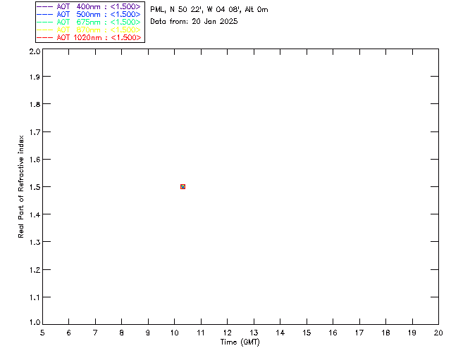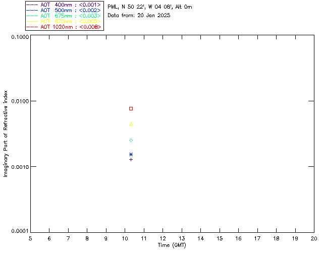 In May 2001 a PREDE POM01-L was installed on the roof of the Plymouth Marine Laboratory to continue the atmospheric correction research of the PML Remote Sensing Group. This was to replace the AERONET CIMEL sunphotometer situated at Rame Head which was decommissioned in 1999. The instrument operates at 7 wavelengths (315, 400, 500, 670, 870, 940 and 1020nm) and scans at pre-set angles away from the solar disk to determine, using the inversion code of Nakajima et al. (2006), various properties of tiny particles called aerosols within the atmospheric column. From these measurements useful atmospheric aerosol parameters such as the Aerosol Optical Thickness (AOT), aerosol size distribution and single scattering albedo can be calculated. Marine aerosols tend to be bigger (D > 1µm) than those generated over the land (0.01 < D < 1µm) and are of a different chemical composition; marine aerosols are salt particles whereas terrestrial aerosols are sulphate compounds.