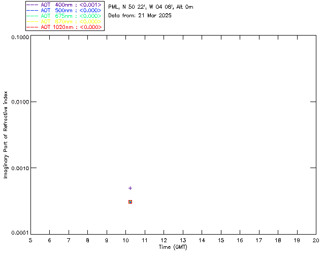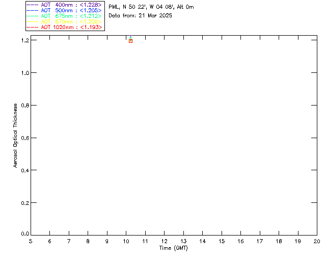 In May 2001 a PREDE POM01-L was installed on the roof of the Plymouth Marine Laboratory to continue the atmospheric correction research of the PML Remote Sensing Group. This was to replace the AERONET CIMEL sunphotometer situated at Rame Head which was decommissioned in 1999. The instrument operates at 7 wavelengths (315, 400, 500, 670, 870, 940 and 1020nm) and scans at pre-set angles away from the solar disk to determine, using the inversion code of Nakajima et al. (2006), various properties of tiny particles called aerosols within the atmospheric column. From these measurements useful atmospheric aerosol parameters such as the Aerosol Optical Thickness (AOT), aerosol size distribution and single scattering albedo can be calculated. Marine aerosols tend to be bigger (D > 1µm) than those generated over the land (0.01 < D < 1µm) and are of a different chemical composition; marine aerosols are salt particles whereas terrestrial aerosols are sulphate compounds.