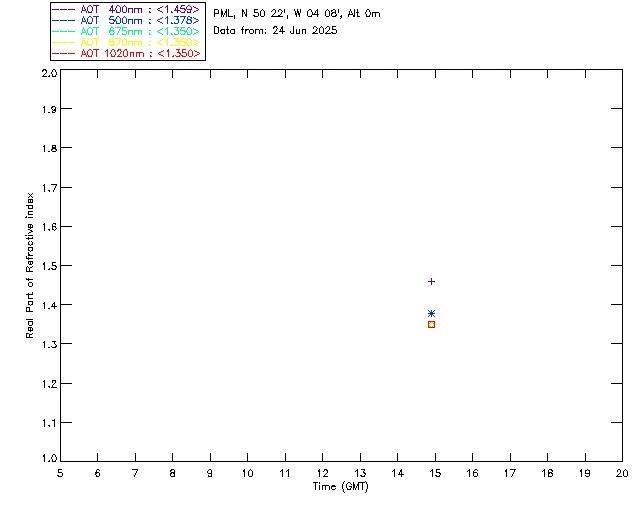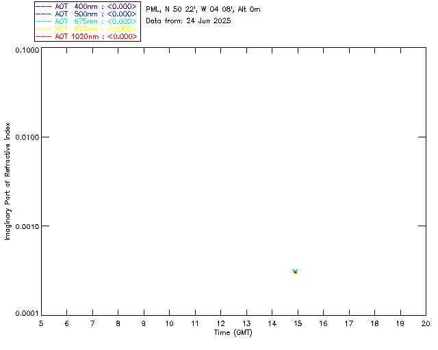 In May 2001 a PREDE POM01-L was installed on the roof of the Plymouth Marine Laboratory to continue the atmospheric correction research of the PML Remote Sensing Group. This was to replace the AERONET CIMEL sunphotometer situated at Rame Head which was decommissioned in 1999. The instrument operates at 7 wavelengths (315, 400, 500, 670, 870, 940 and 1020nm) and scans at pre-set angles away from the solar disk to determine, using the inversion code of Nakajima et al. (2006), various properties of tiny particles called aerosols within the atmospheric column. From these measurements useful atmospheric aerosol parameters such as the Aerosol Optical Thickness (AOT), aerosol size distribution and single scattering albedo can be calculated. Marine aerosols tend to be bigger (D > 1µm) than those generated over the land (0.01 < D < 1µm) and are of a different chemical composition; marine aerosols are salt particles whereas terrestrial aerosols are sulphate compounds.