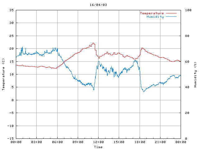 The PML meteorological station, situated on the south-west corner of the building roof, consists of a Hygroclip S3 temperature and humidity sensor housed in a radiation shield, a Mierij Meteo solid state wind sensor (MMW-005), a Chelsea instruments half-hemisphere PAR sensor, a Li-Cor pyranometer (LI-200SZ) and an Omni Instruments 6" tipping bucket raingauge (RG200). The data are logged every 5 minutes using a Pace Scientific XR5 data logger. The real-time rainfall data is likely in error - the correct values will be displayed after a time lag of approximately 24 hours. The meteorological station is sheltered from winds in the north-east and underestimates winds from this quarter. To use these data please contact Dr Tim Smyth.