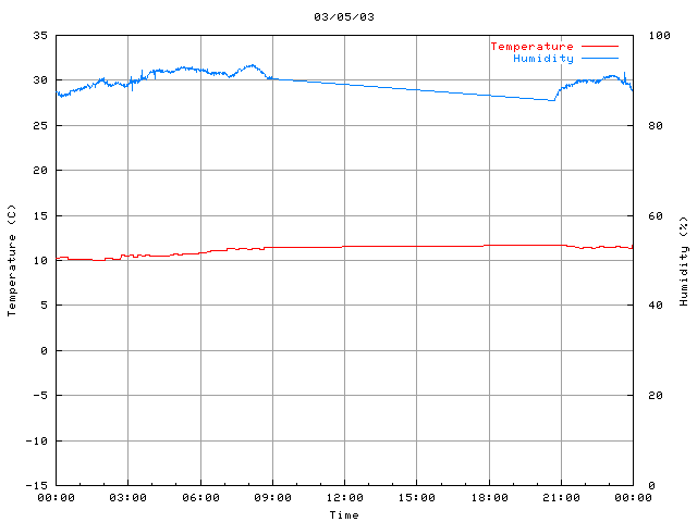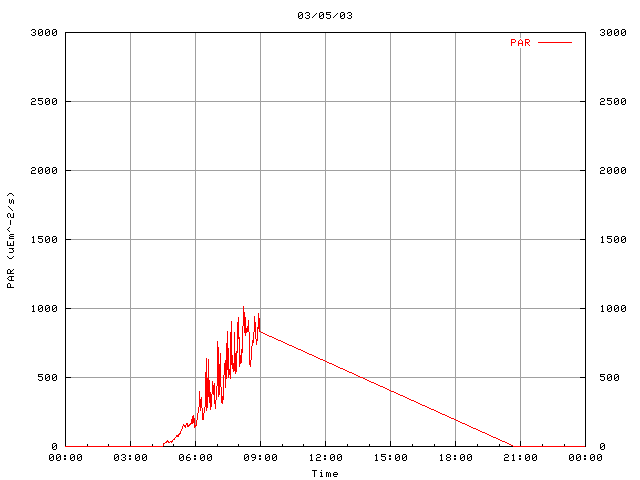 The PML meteorological station, situated on the south-west corner of the building roof, consists of a Hygroclip S3 temperature and humidity sensor housed in a radiation shield, a Mierij Meteo solid state wind sensor (MMW-005), a Chelsea instruments half-hemisphere PAR sensor, a Li-Cor pyranometer (LI-200SZ) and an Omni Instruments 6" tipping bucket raingauge (RG200). The data are logged every 5 minutes using a Pace Scientific XR5 data logger. The real-time rainfall data is likely in error - the correct values will be displayed after a time lag of approximately 24 hours. The meteorological station is sheltered from winds in the north-east and underestimates winds from this quarter. To use these data please contact Dr Tim Smyth.
