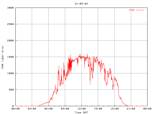 The PML meteorological station, situated on the south-west corner of the building roof, consists of a Hygroclip S3 temperature and humidity sensor housed in a radiation shield, a Mierij Meteo solid state wind sensor (MMW-005), a Chelsea instruments half-hemisphere PAR sensor, a Li-Cor pyranometer (LI-200SZ) and an Omni Instruments 6" tipping bucket raingauge (RG200). The data are logged every 5 minutes using a Pace Scientific XR5 data logger. The real-time rainfall data is likely in error - the correct values will be displayed after a time lag of approximately 24 hours. The meteorological station is sheltered from winds in the north-east and underestimates winds from this quarter. To use these data please contact Dr Tim Smyth.