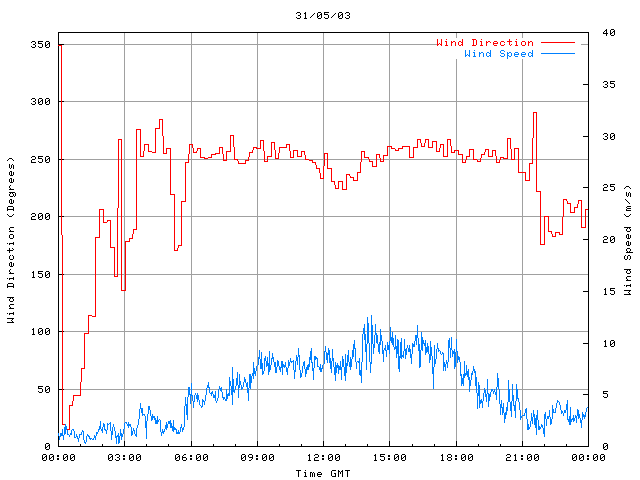 - Max Wind Speed: 13.1 ms-1 Time: 14:10:08 GMT