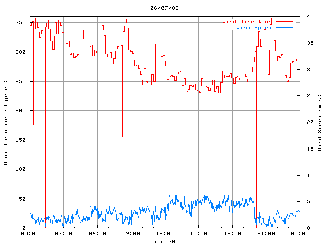 - Max Wind Speed: 7.2 ms-1 Time: 15:39:19 GMT
