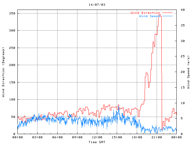 - Max Wind Speed: 8.9 ms-1 Time: 15:17:13 GMT