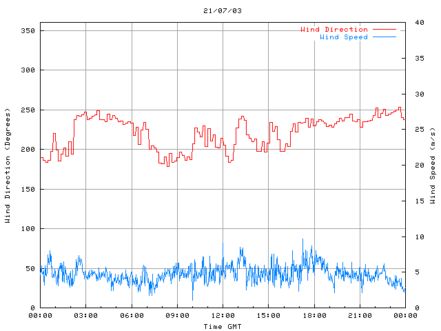- Max Wind Speed: 9.7 ms-1 Time: 17:14:31 GMT