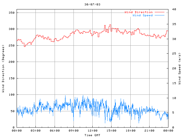 - Max Wind Speed: 11.4 ms-1 Time: 7:50:30 GMT