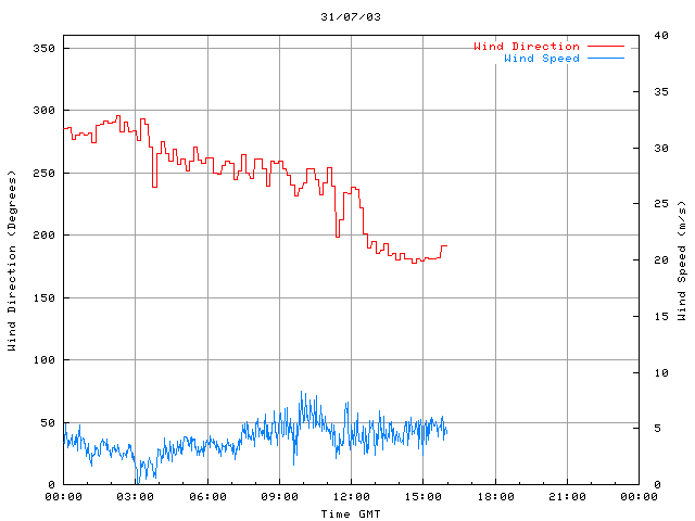 - Max Wind Speed: 8.4 ms-1 Time: 9:54:30 GMT