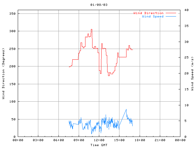 - Max Wind Speed: 9.7 ms-1 Time: 15:59:17 GMT
