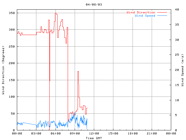 - Max Wind Speed: 6.0 ms-1 Time: 8:54:09 GMT