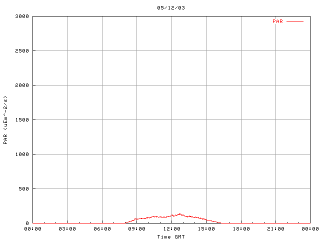 The PML meteorological station, situated on the south-west corner of the building roof, consists of a Hygroclip S3 temperature and humidity sensor housed in a radiation shield, a Mierij Meteo solid state wind sensor (MMW-005), a Chelsea instruments half-hemisphere PAR sensor, a Li-Cor pyranometer (LI-200SZ) and an Omni Instruments 6" tipping bucket raingauge (RG200). The data are logged every 5 minutes using a Pace Scientific XR5 data logger. The real-time rainfall data is likely in error - the correct values will be displayed after a time lag of approximately 24 hours. The meteorological station is sheltered from winds in the north-east and underestimates winds from this quarter. To use these data please contact Dr Tim Smyth.