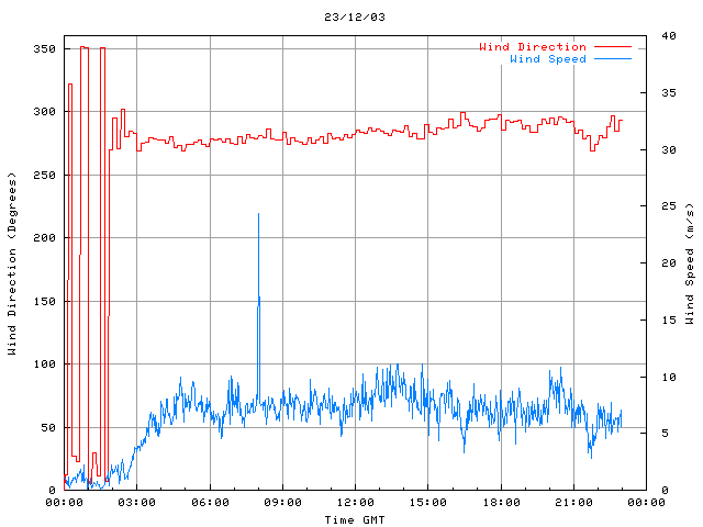 - Max Wind Speed: 24.4 ms-1 Time: 8:00:12 GMT