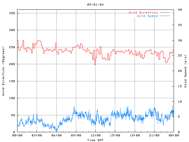 - Max Wind Speed: 9.2 ms-1 Time: 20:16:16 GMT