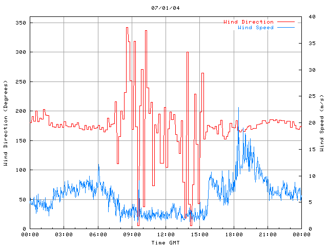 - Max Wind Speed: 22.9 ms-1 Time: 18:24:14 GMT