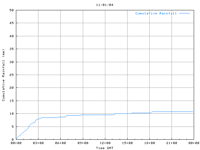 The PML meteorological station, situated on the south-west corner of the building roof, consists of a Hygroclip S3 temperature and humidity sensor housed in a radiation shield, a Mierij Meteo solid state wind sensor (MMW-005), a Chelsea instruments half-hemisphere PAR sensor, a Li-Cor pyranometer (LI-200SZ) and an Omni Instruments 6" tipping bucket raingauge (RG200). The data are logged every 5 minutes using a Pace Scientific XR5 data logger. The real-time rainfall data is likely in error - the correct values will be displayed after a time lag of approximately 24 hours. The meteorological station is sheltered from winds in the north-east and underestimates winds from this quarter. To use these data please contact Dr Tim Smyth.