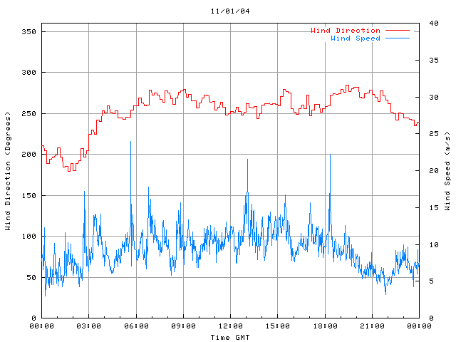- Max Wind Speed: 24.0 ms-1 Time: 5:40:16 GMT