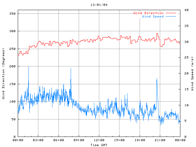 - Max Wind Speed: 23.1 ms-1 Time: 20:31:17 GMT