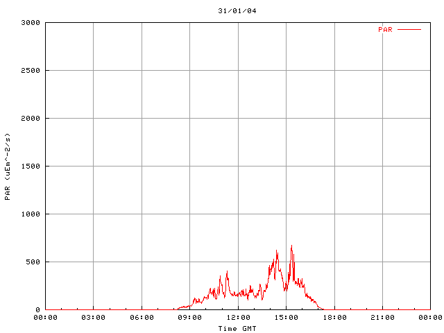The PML meteorological station, situated on the south-west corner of the building roof, consists of a Hygroclip S3 temperature and humidity sensor housed in a radiation shield, a Mierij Meteo solid state wind sensor (MMW-005), a Chelsea instruments half-hemisphere PAR sensor, a Li-Cor pyranometer (LI-200SZ) and an Omni Instruments 6" tipping bucket raingauge (RG200). The data are logged every 5 minutes using a Pace Scientific XR5 data logger. The real-time rainfall data is likely in error - the correct values will be displayed after a time lag of approximately 24 hours. The meteorological station is sheltered from winds in the north-east and underestimates winds from this quarter. To use these data please contact Dr Tim Smyth.