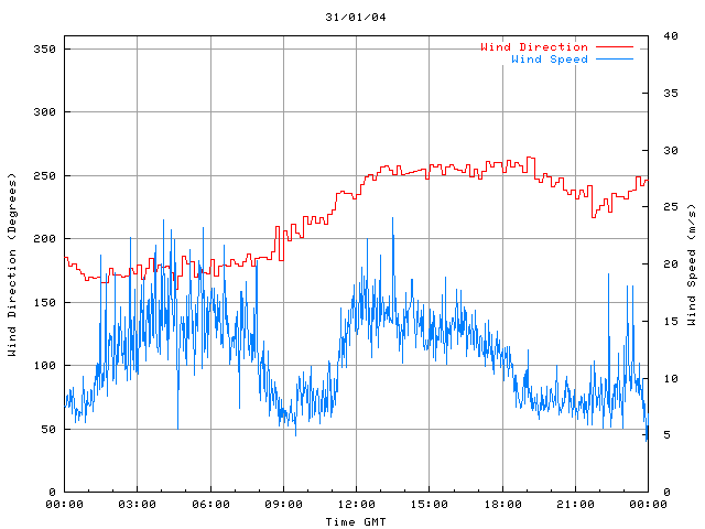 - Max Wind Speed: 24.6 ms-1 Time: 12:59:14 GMT