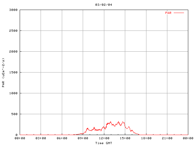 The PML meteorological station, situated on the south-west corner of the building roof, consists of a Hygroclip S3 temperature and humidity sensor housed in a radiation shield, a Mierij Meteo solid state wind sensor (MMW-005), a Chelsea instruments half-hemisphere PAR sensor, a Li-Cor pyranometer (LI-200SZ) and an Omni Instruments 6" tipping bucket raingauge (RG200). The data are logged every 5 minutes using a Pace Scientific XR5 data logger. The real-time rainfall data is likely in error - the correct values will be displayed after a time lag of approximately 24 hours. The meteorological station is sheltered from winds in the north-east and underestimates winds from this quarter. To use these data please contact Dr Tim Smyth.