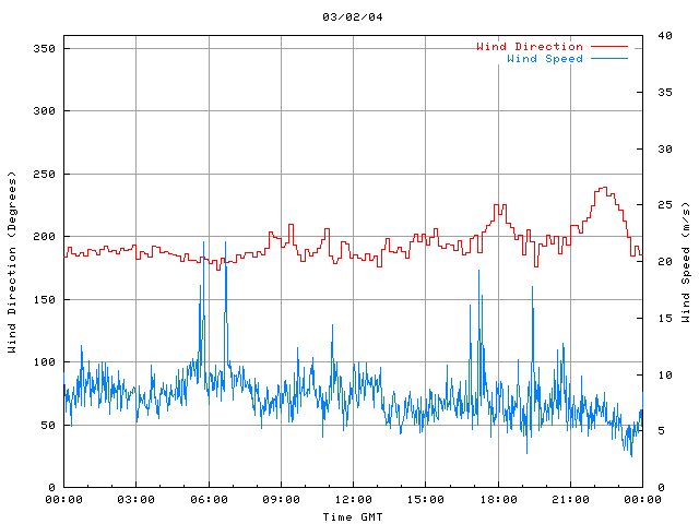 - Max Wind Speed: 24.3 ms-1 Time: 6:43:13 GMT