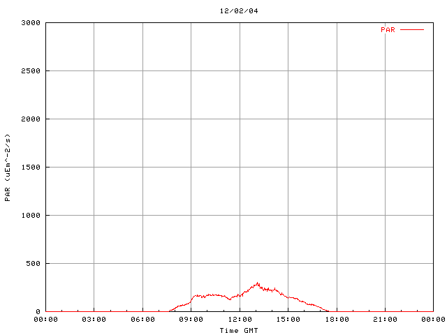 The PML meteorological station, situated on the south-west corner of the building roof, consists of a Hygroclip S3 temperature and humidity sensor housed in a radiation shield, a Mierij Meteo solid state wind sensor (MMW-005), a Chelsea instruments half-hemisphere PAR sensor, a Li-Cor pyranometer (LI-200SZ) and an Omni Instruments 6" tipping bucket raingauge (RG200). The data are logged every 5 minutes using a Pace Scientific XR5 data logger. The real-time rainfall data is likely in error - the correct values will be displayed after a time lag of approximately 24 hours. The meteorological station is sheltered from winds in the north-east and underestimates winds from this quarter. To use these data please contact Dr Tim Smyth.