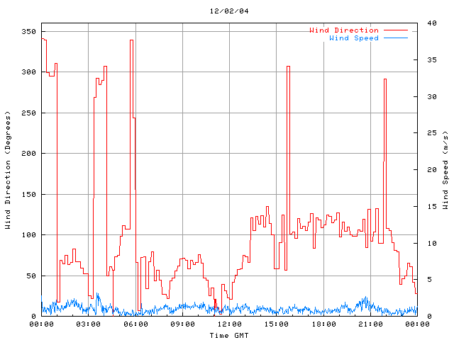 - Max Wind Speed: 3.1 ms-1 Time: 3:32:12 GMT