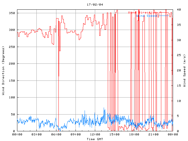 - Max Wind Speed: 8.1 ms-1 Time: 13:21:15 GMT