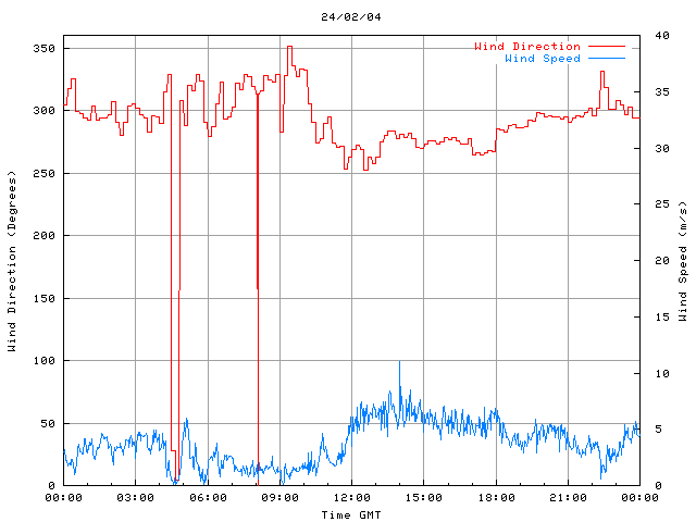 - Max Wind Speed: 11.0 ms-1 Time: 14:00:07 GMT