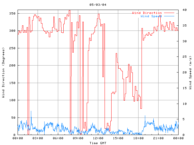 - Max Wind Speed: 7.7 ms-1 Time: 2:00:09 GMT