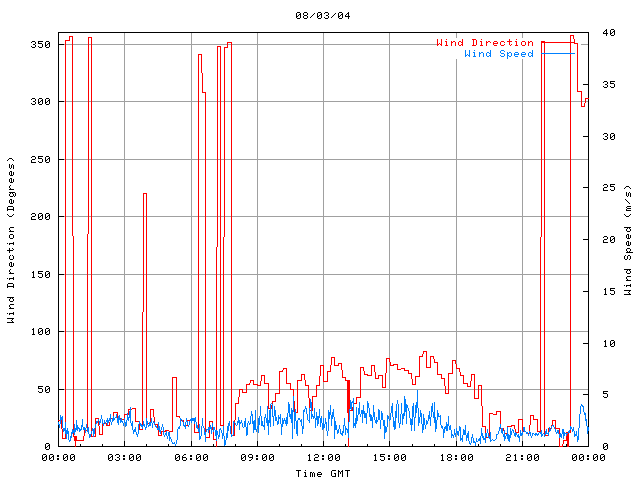 - Max Wind Speed: 5.4 ms-1 Time: 13:35:10 GMT