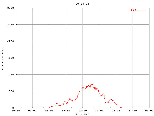 The PML meteorological station, situated on the south-west corner of the building roof, consists of a Hygroclip S3 temperature and humidity sensor housed in a radiation shield, a Mierij Meteo solid state wind sensor (MMW-005), a Chelsea instruments half-hemisphere PAR sensor, a Li-Cor pyranometer (LI-200SZ) and an Omni Instruments 6" tipping bucket raingauge (RG200). The data are logged every 5 minutes using a Pace Scientific XR5 data logger. The real-time rainfall data is likely in error - the correct values will be displayed after a time lag of approximately 24 hours. The meteorological station is sheltered from winds in the north-east and underestimates winds from this quarter. To use these data please contact Dr Tim Smyth.