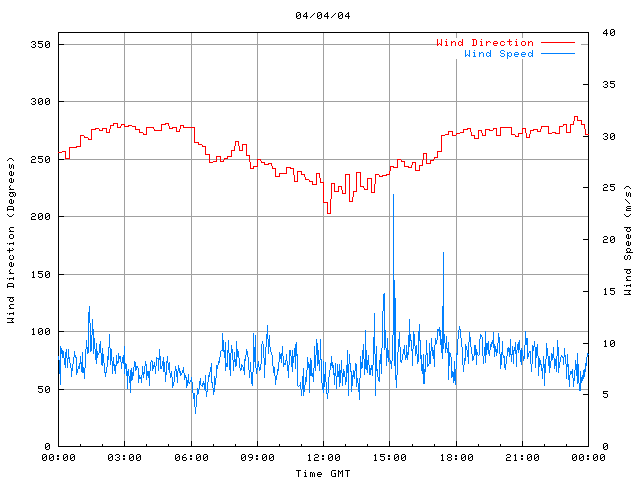 - Max Wind Speed: 24.4 ms-1 Time: 15:10:12 GMT