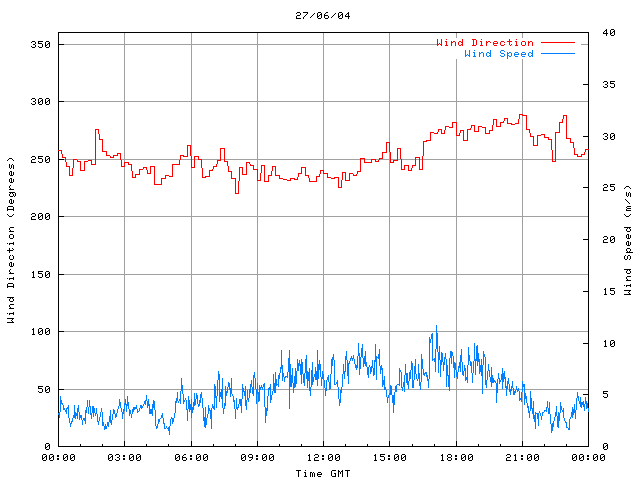 - Max Wind Speed: 11.7 ms-1 Time: 17:06:23 GMT