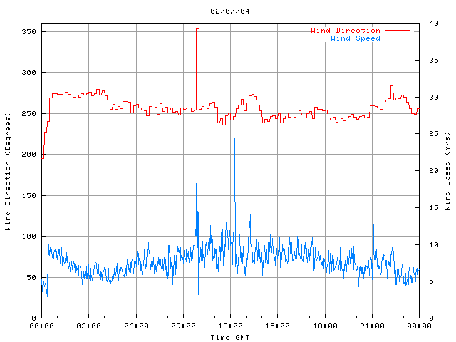 - Max Wind Speed: 24.4 ms-1 Time: 12:16:24 GMT