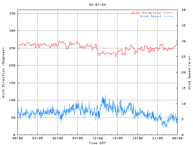 - Max Wind Speed: 12.7 ms-1 Time: 13:10:30 GMT