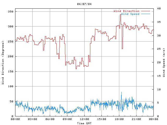 - Max Wind Speed: 8.9 ms-1 Time: 18:26:19 GMT