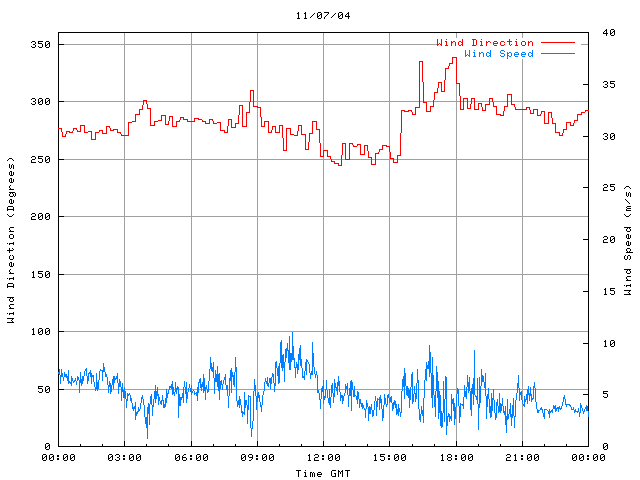 - Max Wind Speed: 11.1 ms-1 Time: 10:35:19 GMT