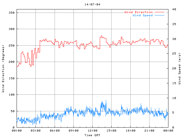 - Max Wind Speed: 9.7 ms-1 Time: 13:39:20 GMT