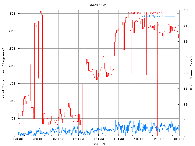 - Max Wind Speed: 5.7 ms-1 Time: 17:59:17 GMT