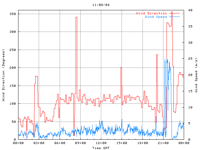 - Max Wind Speed: 24.9 ms-1 Time: 21:14:33 GMT