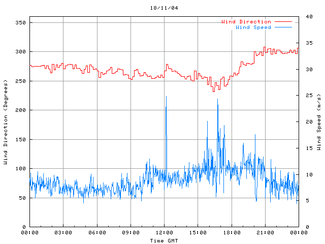 - Max Wind Speed: 24.8 ms-1 Time: 12:10:29 GMT