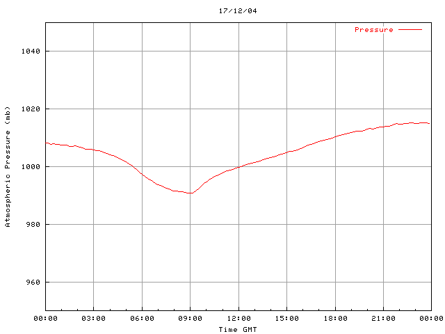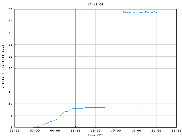 The PML meteorological station, situated on the south-west corner of the building roof, consists of a Hygroclip S3 temperature and humidity sensor housed in a radiation shield, a Mierij Meteo solid state wind sensor (MMW-005), a Chelsea instruments half-hemisphere PAR sensor, a Li-Cor pyranometer (LI-200SZ) and an Omni Instruments 6" tipping bucket raingauge (RG200). The data are logged every 5 minutes using a Pace Scientific XR5 data logger. The real-time rainfall data is likely in error - the correct values will be displayed after a time lag of approximately 24 hours. The meteorological station is sheltered from winds in the north-east and underestimates winds from this quarter. To use these data please contact Dr Tim Smyth.