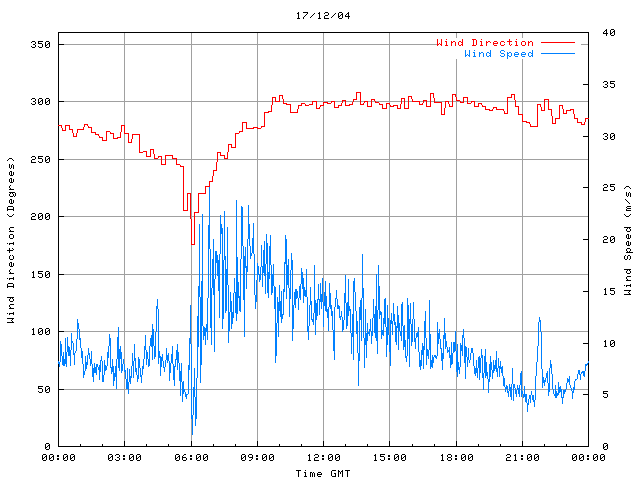 - Max Wind Speed: 25.0 ms-1 Time: 6:50:15 GMT