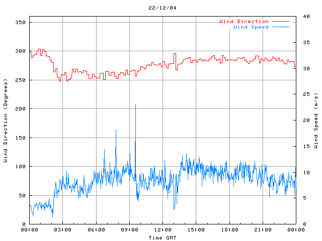 - Max Wind Speed: 23.2 ms-1 Time: 9:31:13 GMT