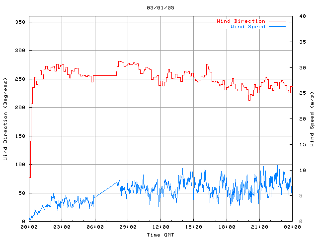 - Max Wind Speed: 10.9 ms-1 Time: 22:37:17 GMT