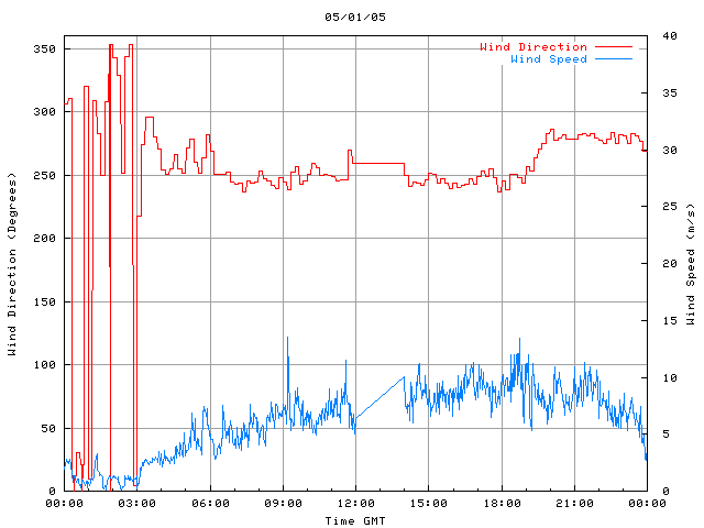 - Max Wind Speed: 14.0 ms-1 Time: 9:13:30 GMT