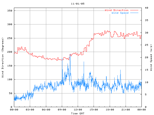 - Max Wind Speed: 24.9 ms-1 Time: 10:31:13 GMT