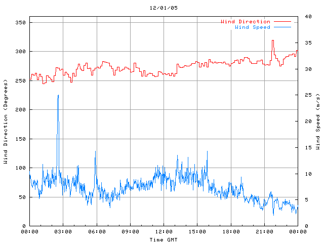 - Max Wind Speed: 25.0 ms-1 Time: 2:33:11 GMT